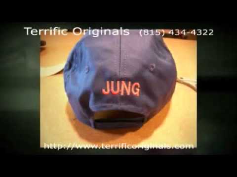 Marseilles Illinois. This video contains samples of embroidered baseball caps, plus shirts, t-shirts, hankies, and blankets Heat transfers are shown on sweatpants. tees shirts, and gym shorts. We also show an example of a subliimated image on a glass cutting board.